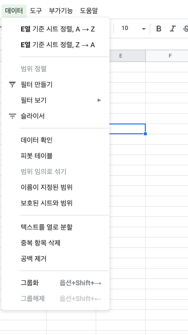 스프레드시트에서는 엑셀의 가장 강력한 기능이며 직장인의 친구라고(?) 할 수 있는 피봇 테이블도 제공하고 있습니다