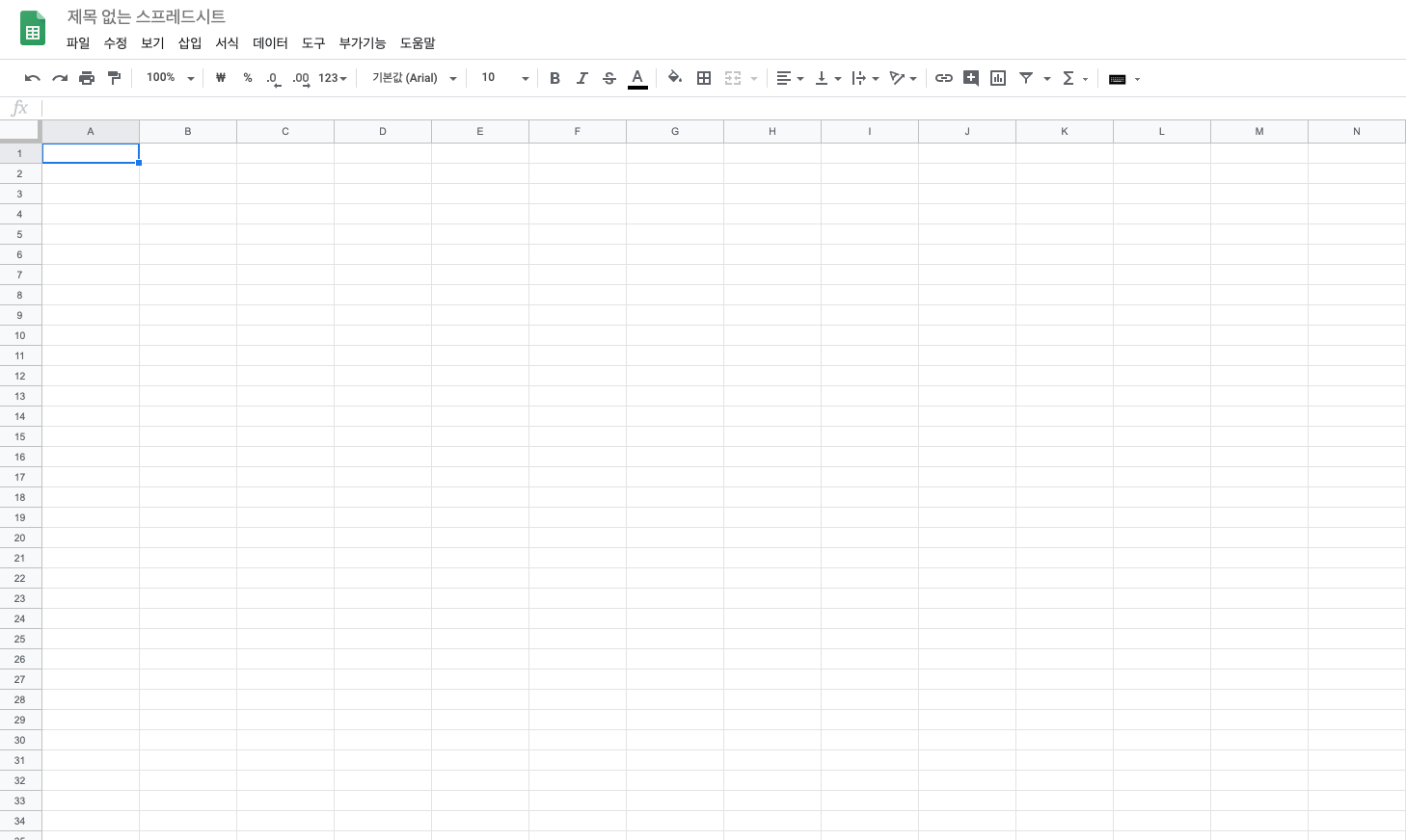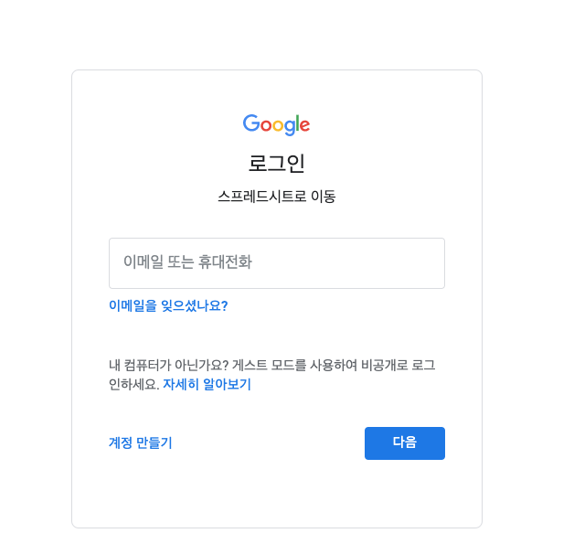 로그인을 하면 이렇게 스프레드 시트를 시작할 수 있습니다
