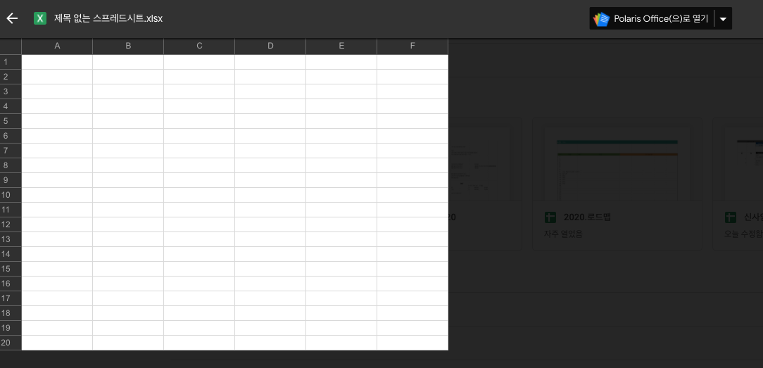 스프레드시트를 클릭하면 바로 엑셀을 구글 스프레드시트에서 읽어서 보여줍니다