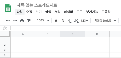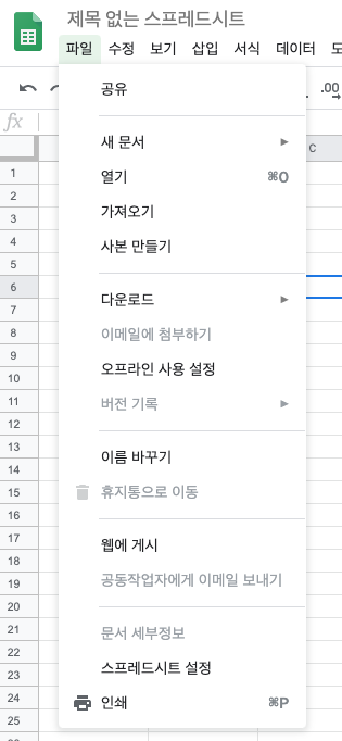스프레드시트 왼쪽 상단을 보면 파일이라는 메뉴가 있어요