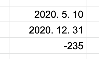 엑셀과 스프레드시트에서는 날짜간의 -+도 가능하다는 점을 알 수 있었습니다