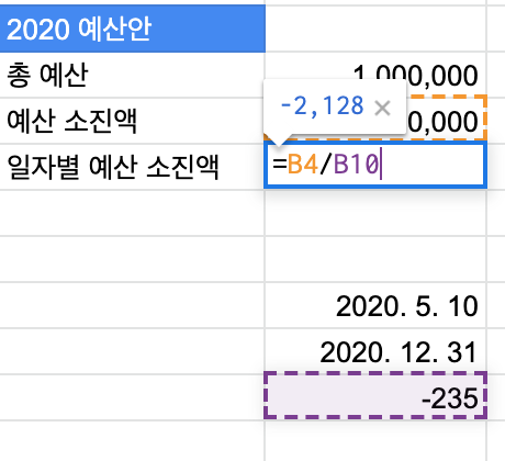 그렇다면 아까 일평균 소진 예산은 어떻게 계산해볼까요?
